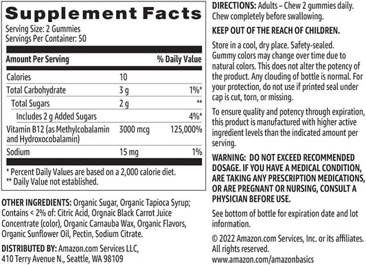 Amazon Basics Vitamin B12 3000 mcg Gummies
