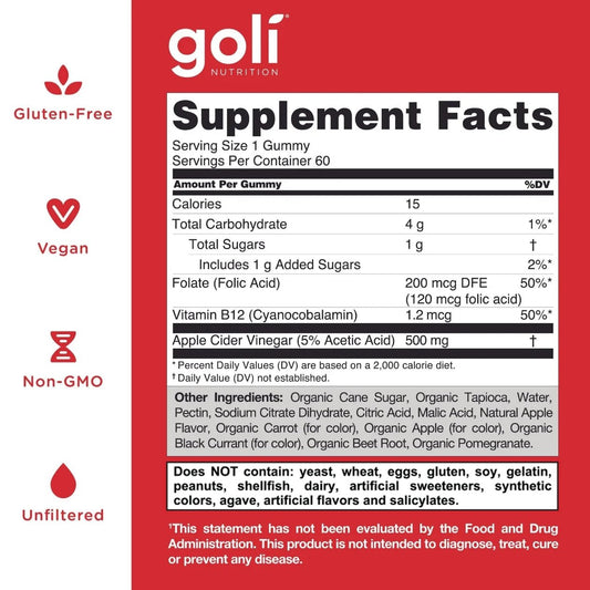 Goli Apple Cider Vinegar Gummy Vitamins - 60 Count